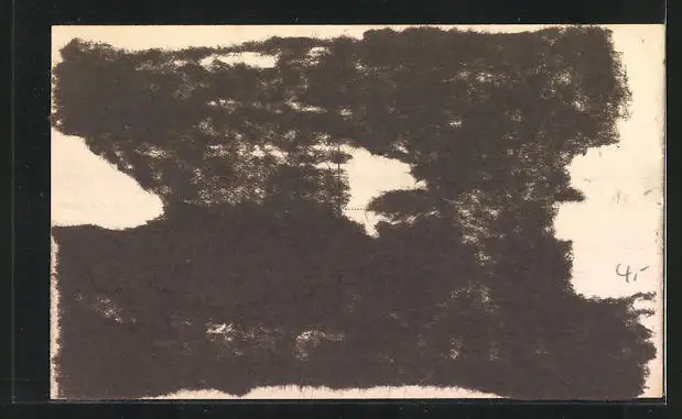 Personenbezogene Daten auf der Rückseite der Karte wurden durch blauen Textmarker unkenntlich gemacht. Die blauen Stellen sind auf die Vorderseite durchgeweicht und wirken sich negativ auf das Postkartenfoto aus