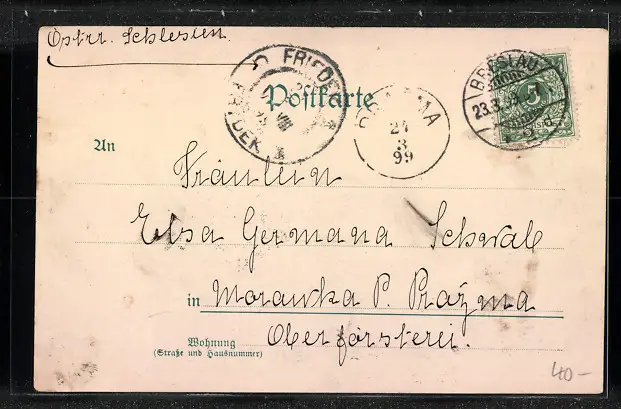 alte Ansichtskarte, gelaufen 1899, guter Zustand