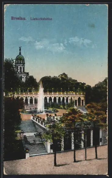 AK Breslau, Liebichshöhe mit Springbrunnen