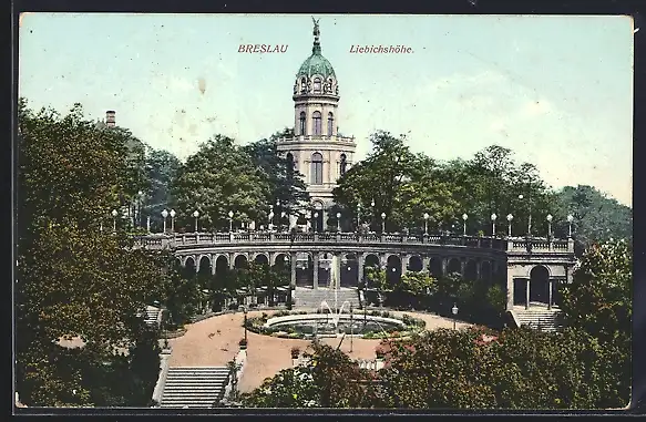 AK Breslau, Liebichshöhe mit Springbrunnen