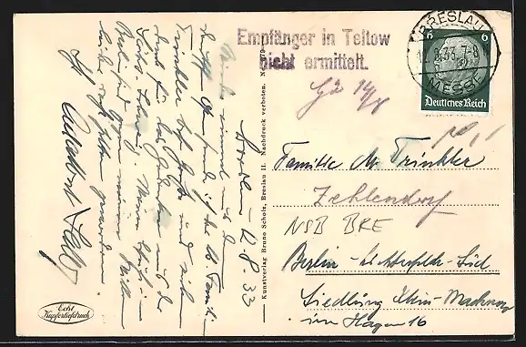 alte Ansichtskarte, gelaufen 1933, Eckknick li. oben, Stempelspur, guter Zustand