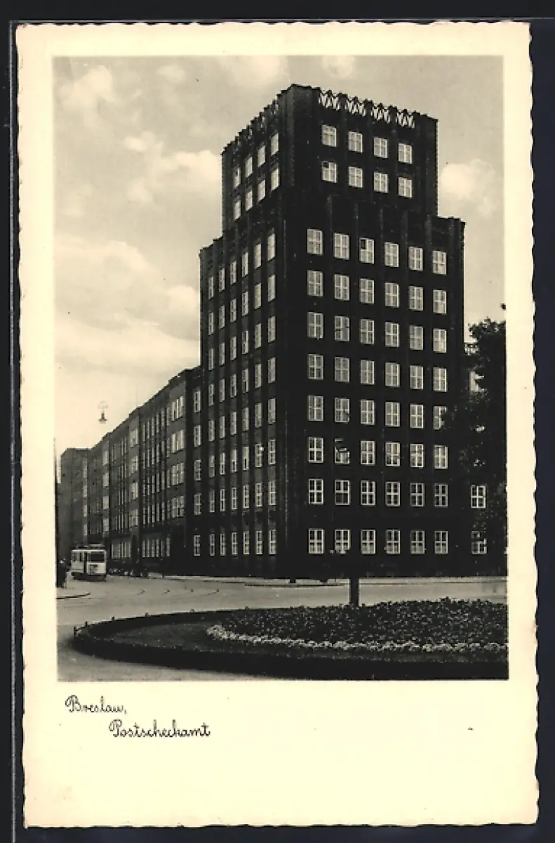 AK Breslau, Postscheckamt, Strassenbahn