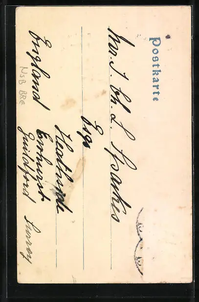 alte Ansichtskarte, gelaufen, Briefmarke entfernt, rückseitig Oberflächenschaden, guter Zustand