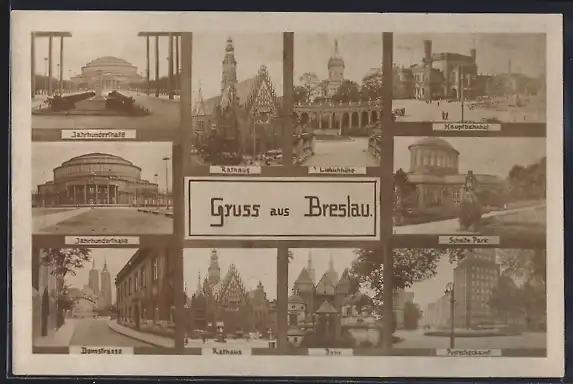 AK Breslau, Rathaus, Dom, Jahrhunderthalle