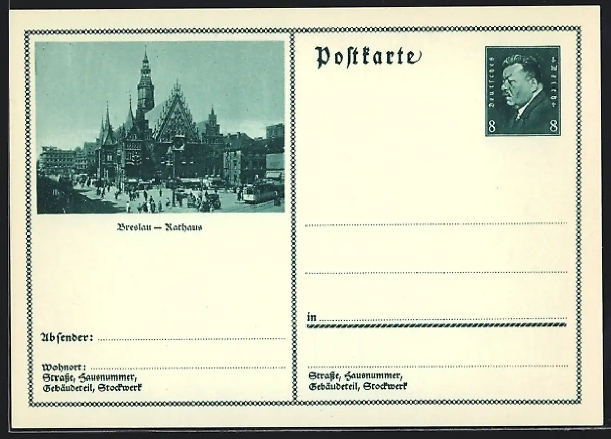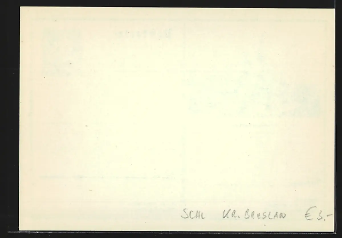 Personenbezogene Daten auf der Rückseite der Karte wurden durch blauen Textmarker unkenntlich gemacht. Die blauen Stellen sind auf die Vorderseite durchgeweicht und wirken sich negativ auf das Postkartenfoto aus