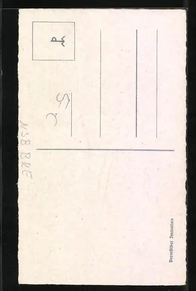Personenbezogene Daten auf der Rückseite der Karte wurden durch blauen Textmarker unkenntlich gemacht. Die blauen Stellen sind auf die Vorderseite durchgeweicht und wirken sich negativ auf das Postkartenfoto aus