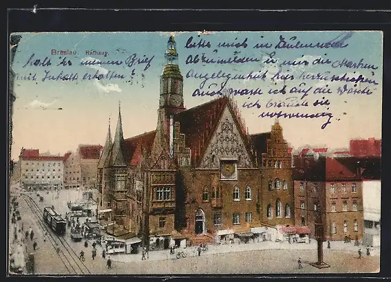 AK Breslau, Rathaus mit Strassenbahn