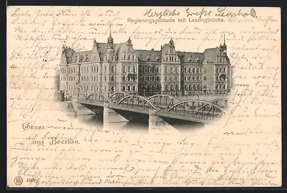 AK Breslau, Regierungsgebäude mit Lessingbrücke