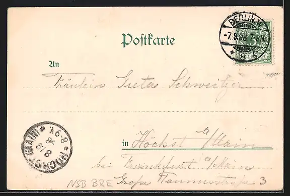 alte Ansichtskarte, gelaufen 1898, guter Zustand