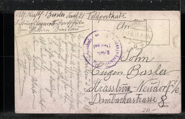 alte Ansichtskarte, gelaufen 1918 als Feldpost, Eckknick oben links, guter Zustand