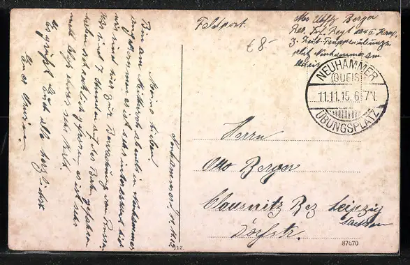 alte Ansichtskarte, gelaufen 1915 als Feldpost, guter Zustand