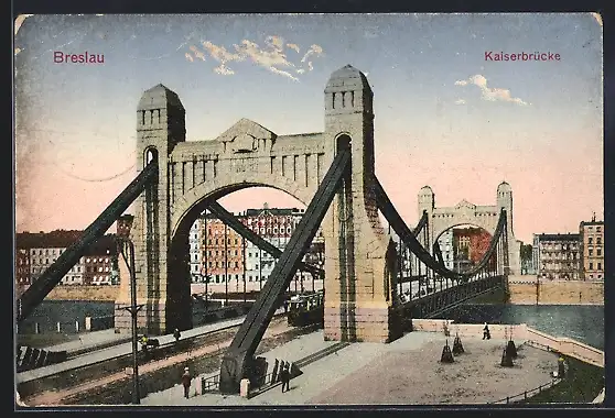 AK Breslau, Strassenpartie an der Kaiserbrücke