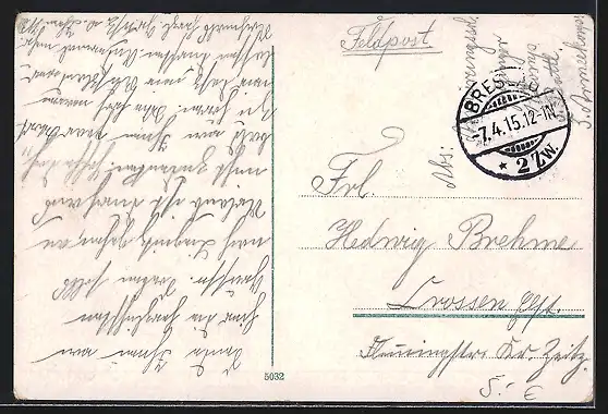 alte Ansichtskarte, gelaufen 1915, Eckknicke li. oben, guter Zustand