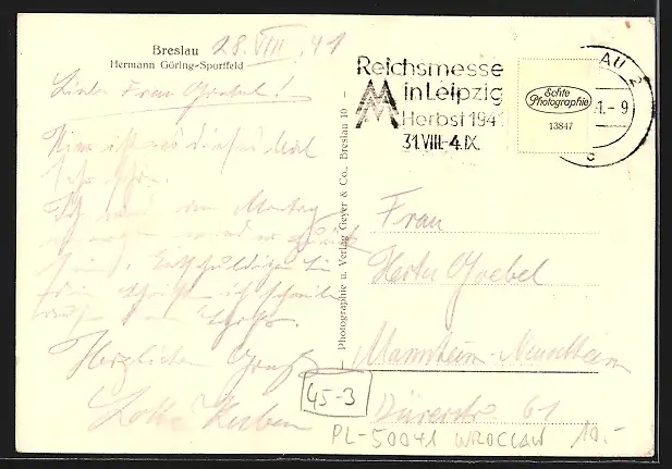 AK Breslau, Teilansicht vom Hermann Göring-Sportfeld