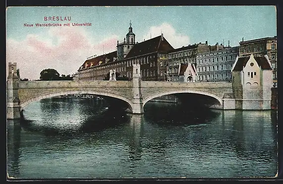 AK Breslau, neue Werderbrücke mit Universität