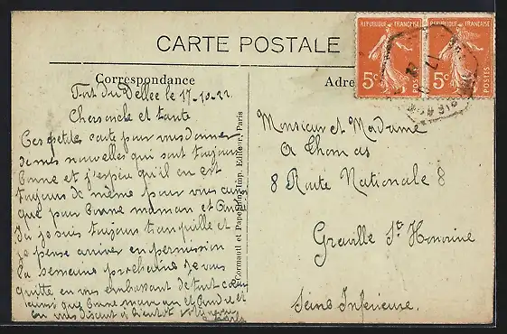 Personenbezogene Daten auf der Rückseite der Karte wurden durch blauen Textmarker unkenntlich gemacht. Die blauen Stellen sind auf die Vorderseite durchgeweicht und wirken sich negativ auf das Postkartenfoto aus