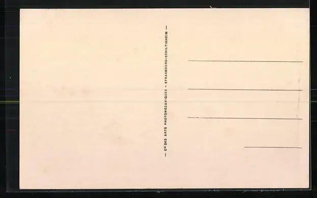 Personenbezogene Daten auf der Rückseite der Karte wurden durch blauen Textmarker unkenntlich gemacht. Die blauen Stellen sind auf die Vorderseite durchgeweicht und wirken sich negativ auf das Postkartenfoto aus