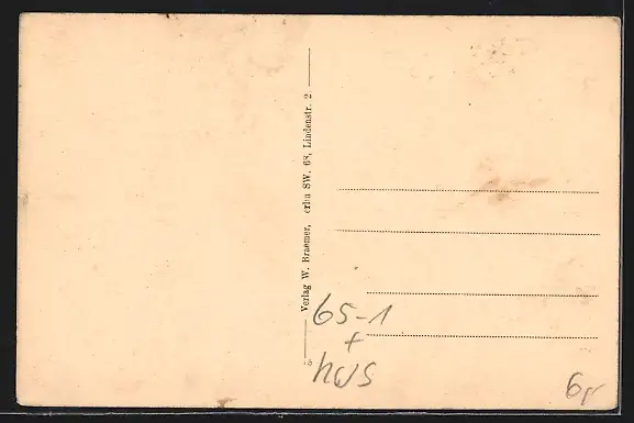 Personenbezogene Daten auf der Rückseite der Karte wurden durch blauen Textmarker unkenntlich gemacht. Die blauen Stellen sind auf die Vorderseite durchgeweicht und wirken sich negativ auf das Postkartenfoto aus