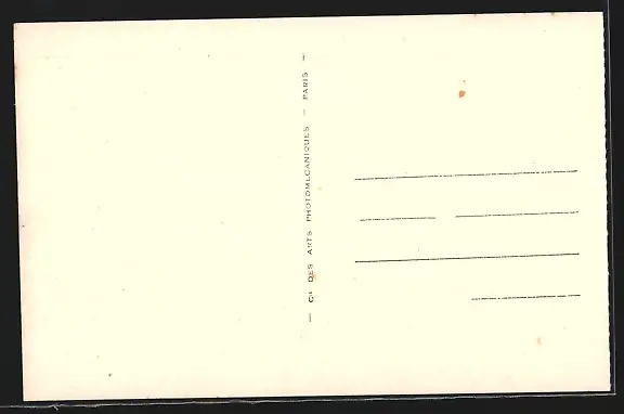 Personenbezogene Daten auf der Rückseite der Karte wurden durch blauen Textmarker unkenntlich gemacht. Die blauen Stellen sind auf die Vorderseite durchgeweicht und wirken sich negativ auf das Postkartenfoto aus