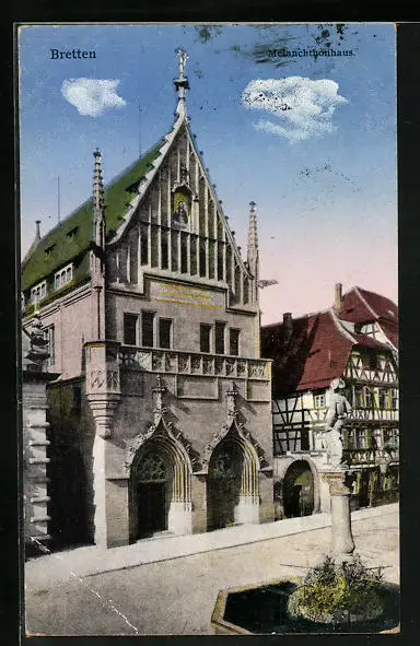 AK Bretten, Melanchthonhaus, Strassenpartie mit Brunnen