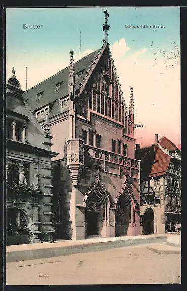 AK Bretten, Melanchthonhaus mit Strassenpartie