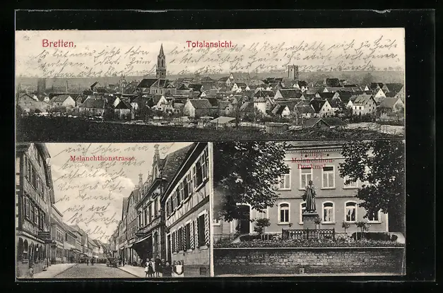 AK Bretten, Philipp Melanchthon-Denkmal, Melanchthonstrasse, Totalansicht