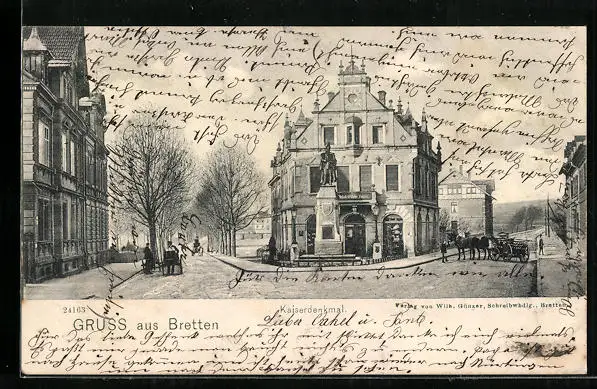 AK Bretten, Strassenpartie am Kaiserdenkmal