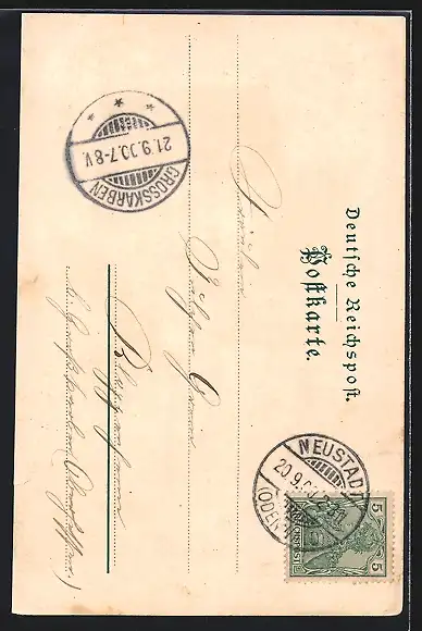 alte Ansichtskarte, gelaufen 1900, Stempelspur, guter Zustand