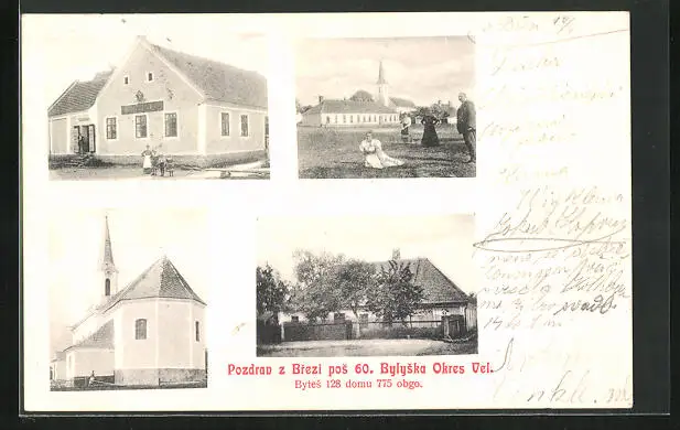 AK Brezi, Hostinec, Kostel, Ortspartie