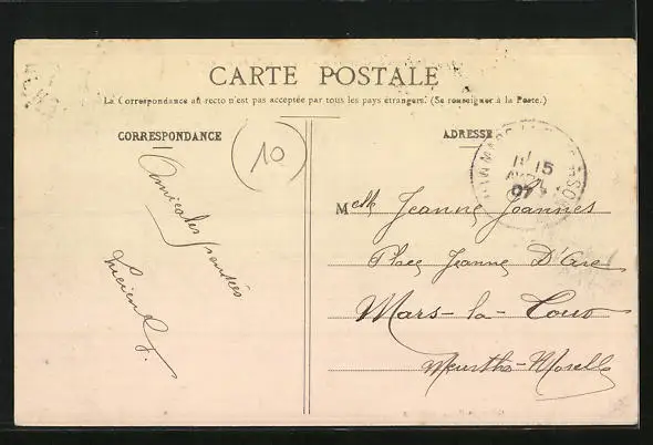 alte Ansichtskarte, gelaufen 1907, Bugspur Ecke li. oben, guter Zustand