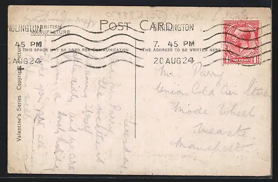 gelaufen 1924, Eckknicke li. oben u. re. unten, guter Zustand