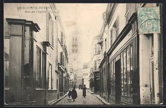 AK Brie-Comte-Robert, Rue de l`Église avec vue sur la tour de l`église