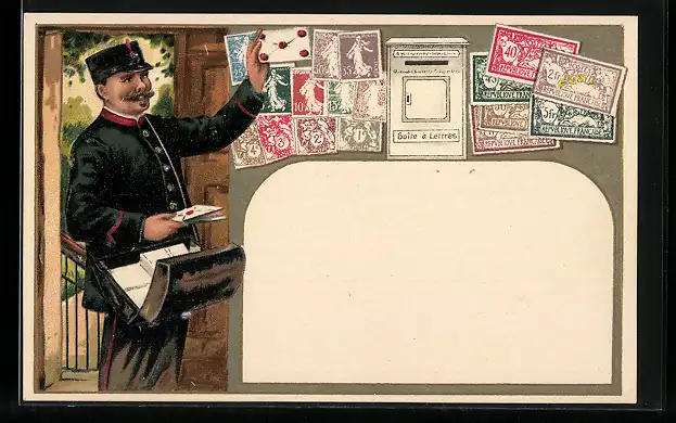 AK Briefbote bringt französische Briefe und Briefmarken, Boîte à Lettres