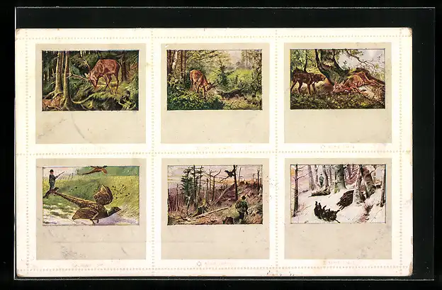AK Briefmarken der Serie 206 /1-6, verschiedene Waldtiere