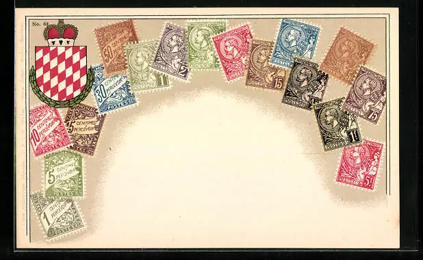 AK Briefmarken und Wappen Monacos, Krone