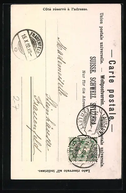 alte Ansichtskarte, gelaufen 1902, Eckknick re. oben, guter Zustand
