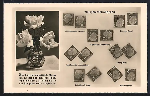 AK Briefmarkensprache, Dein auf Ewig!, Rosen
