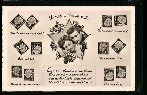 AK Briefmarkensprache, Hab mich lieb, Dein auf ewig