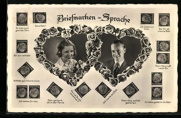 AK Briefmarkensprache, Ich liebe nur Dich, Herzmotive