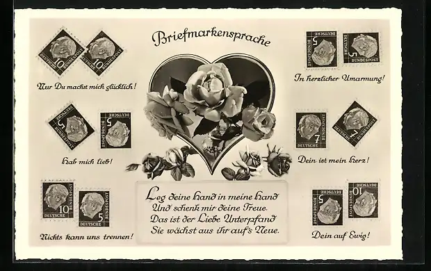 AK Briefmarkensprache, Nur Du machst mich glücklich!, Rosen