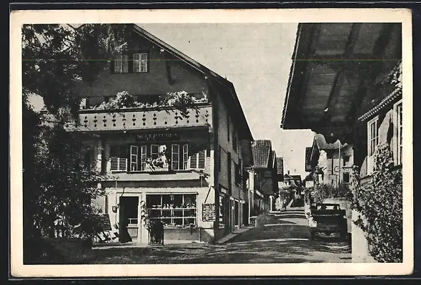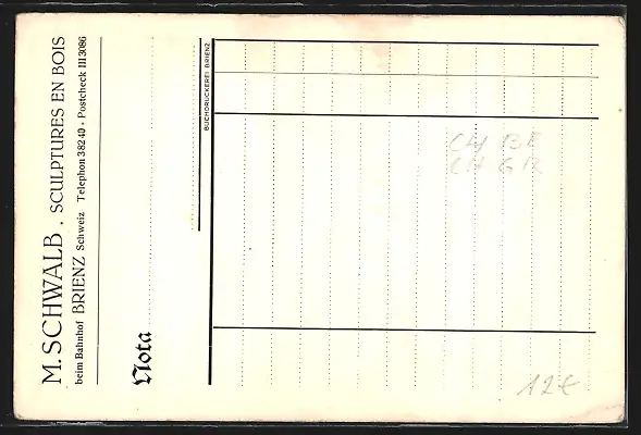 AK Brienz, Ortspartie mit Haus Sculptures en Bois
