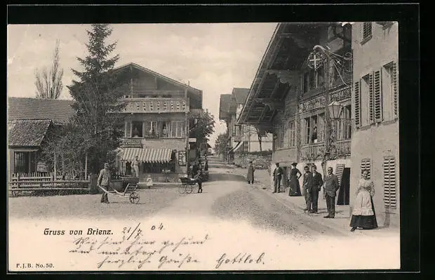 AK Brienz, Strassenpartie mit Fabrikation F. Schwalb