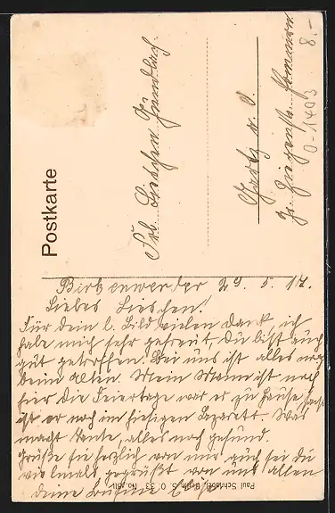 alte Ansichtskarte, ungelaufen, Briefmarke entfernt, rückseitig Oberflächenschaden, guter Zustand
