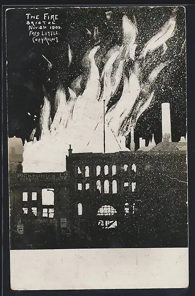AK Bristol, The Fire 1905, Häuser nachts in Brand