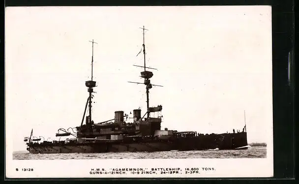 AK Britisches Kriegsschiff HMS Agamemnon in voller Fahrt