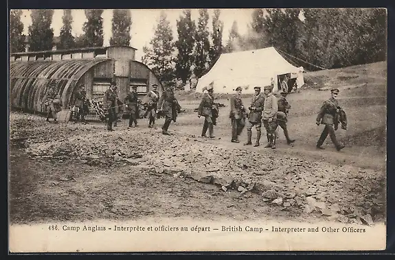 AK British Camp, Interpreter and Officers, britische Soldaten in Uniform