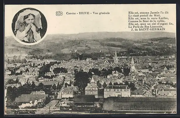 AK Brive, Vue générale sur la ville avec paysage vallonné