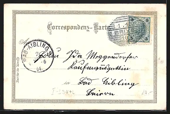 alte Ansichtskarte, gelaufen 1904, guter Zustand