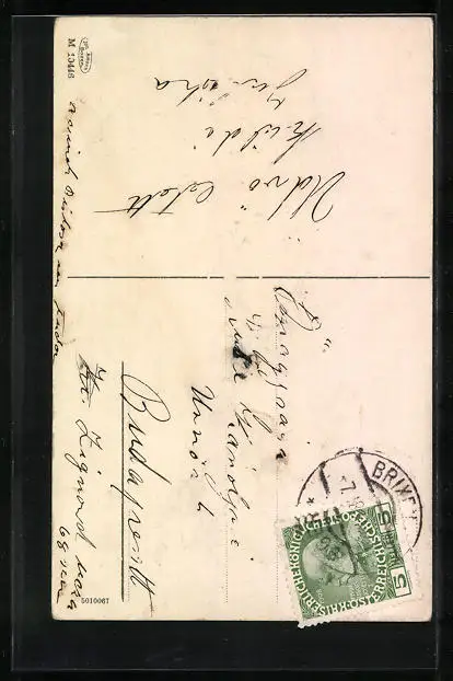 alte Ansichtskarte, gelaufen 1911, Briefmarke tw. entfernt, rückseitig Oberflächenschaden, Eckknick li. unten, guter Zustand