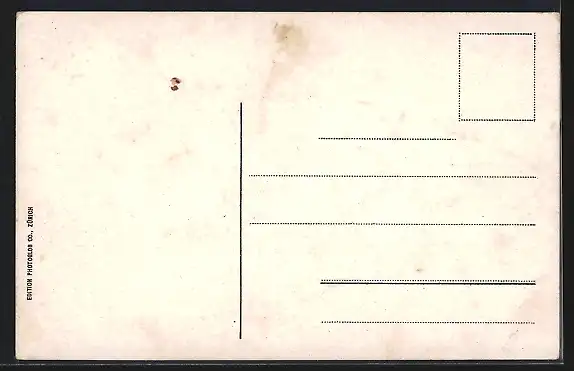 Personenbezogene Daten auf der Rückseite der Karte wurden durch blauen Textmarker unkenntlich gemacht. Die blauen Stellen sind auf die Vorderseite durchgeweicht und wirken sich negativ auf das Postkartenfoto aus